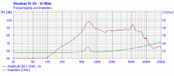 Der M 10 von Visaton ist ein 100-mm-Konusmitteltöner mit rückseitig geschlossener Konstruktion, wodurch kein separates Mitteltongehäuse nötig ist. Für den Bereich von etwa 1000 bis 5000 Hz ausgelegt, empfiehlt der Hersteller eine Hochpassbeschaltung ab 800 Hz mit 12 dB/Okt. Die Nennbelastbarkeit liegt bei 80 W, die Musikbelastbarkeit bei 100 W, der mittlere Schalldruckpegel bei 90 dB (1 W/1 m). Der M 10 besitzt eine 20-mm-Schwingspule, 95 mm Einbau-Ø und 0,33 kg Nettogewicht.