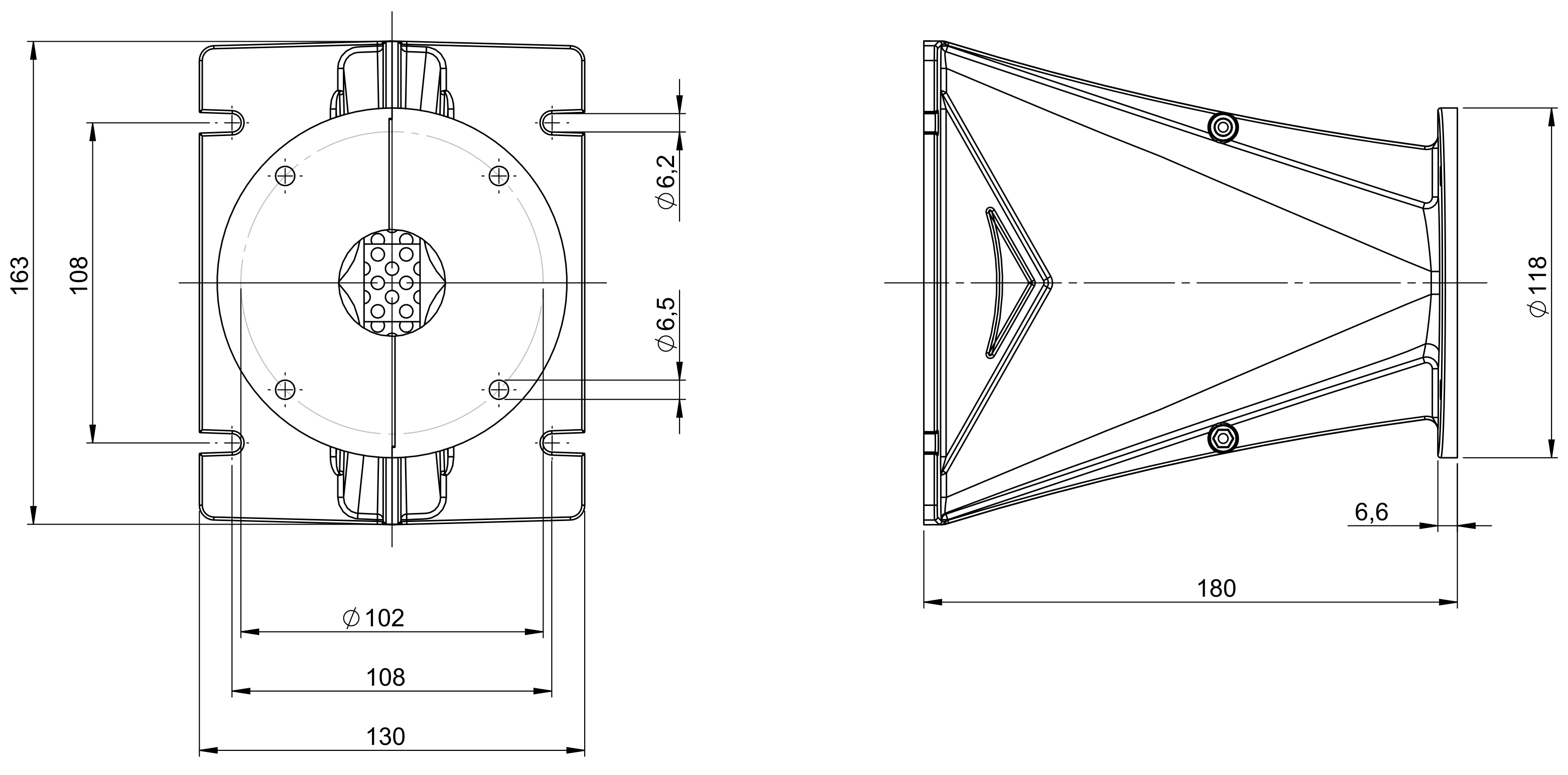 Breite horizontale Abdeckung bei kompakter Front – genau dafür ist dieses Waveguide gebaut. In Line-Array-Modulen ermöglicht es gleichmäßige Pegelverteilung über viele Sitzreihen, in Near-/Frontfills sorgt es für saubere Ankopplung an die Haupt-PA. Der 1,4-Zoll-Hals passt zu entsprechenden Kompressionstreibern; Trennfrequenzen ab 0,8 kHz sind praxisnah. Das robuste Aluminiumgehäuse verträgt häufige Demontage, die 4-Loch-Montage auf 102-mm-Lochkreis vereinfacht das Handling. Für Festinstallationen lassen sich geringe Einbautiefe und 153-mm-Ausschnitt leicht integrieren; mobile Anwender profitieren von geringem Gewicht und stabiler Richtwirkung.