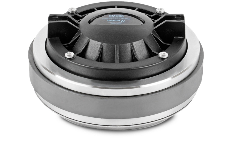 Der SMC-60 von Beyma ist ein 2-Zoll-Kompressionstreiber mit 50,8 mm Hals und 72,2 mm Schwingspule, ausgelegt für den Betrieb oberhalb von 0,8 kHz. Die Titan-Kalotte mit Polyester-Sicke, die Ferrit-Magnetschaltung und eine Flussdichte von 1,55 T liefern robuste Performance bei hoher Belastbarkeit von 80 W AES bzw. 160 W Programm. Die Empfindlichkeit liegt gekoppelt an Horn bei 109 dB (1 W/1 m) über den Bereich 0,5–18 kHz. Das Gehäuse misst 156 mm im Durchmesser bei 75 mm Tiefe; die Montage erfolgt über vier M6-Gewinde auf 101,6 mm Lochkreis. Damit kombiniert der SMC-60 kontrollierte Abdeckung und praxisgerechte Anschlussmaße für professionelle HF-Sektionen.